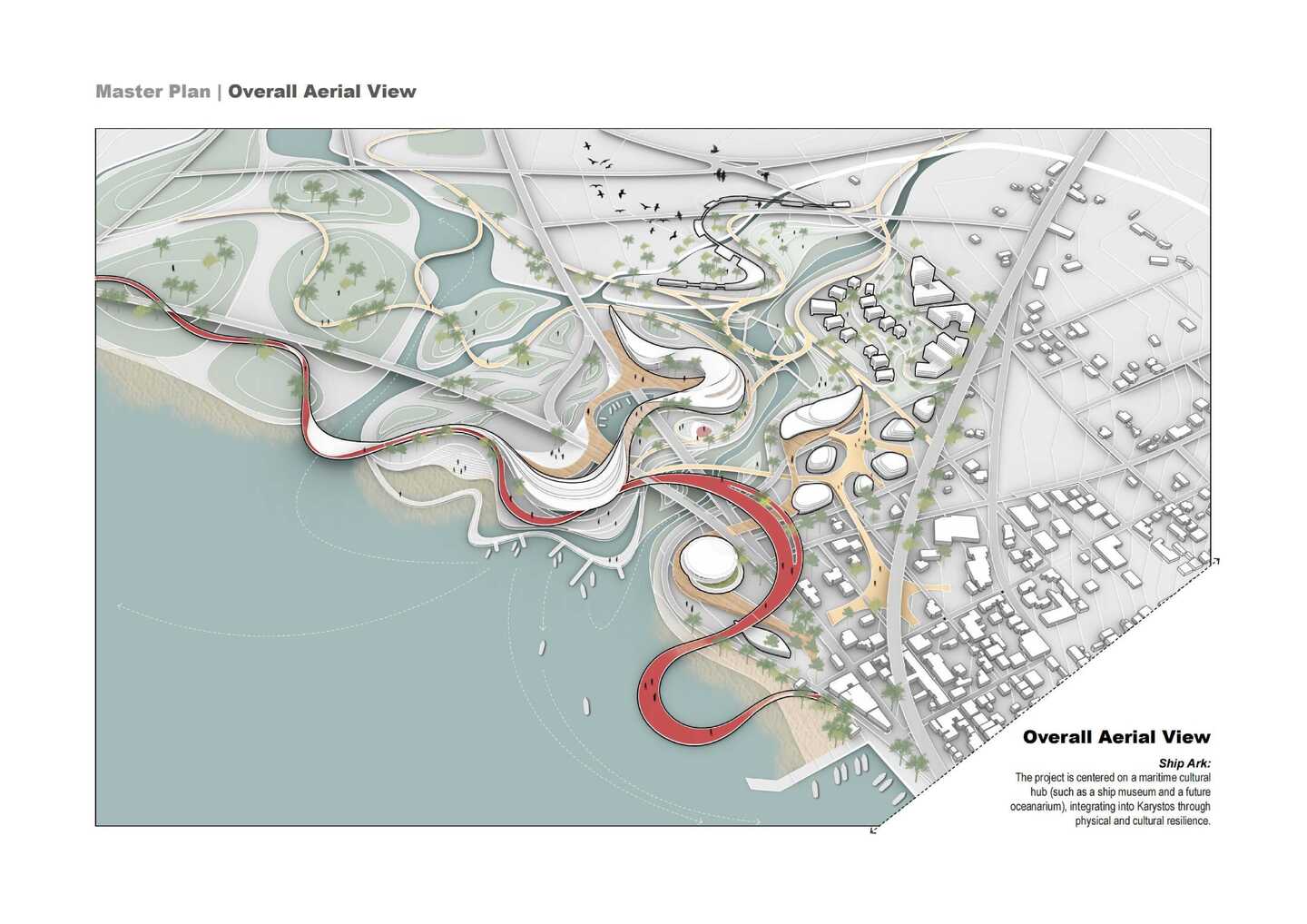 Ultimately, the Resilient Ark functions as an experimental urban model, mapping the relationship between vortex, terrain, and human flow to envision a dynamic and adaptive dialogue between city, culture, and nature.