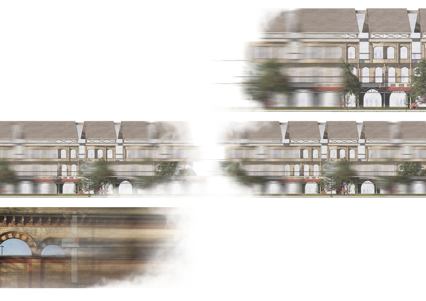 Industrial heritage, collective memory, and civic renewal are deeply embedded in Crewe’s identity, and it is within this narrative that the architectural proposal takes shape. Drawing on the language of historic railway structures, urban stitching, and adaptive reuse, the design integrates housing, workspaces, and cultural programmes within a mixed-use landscraper. This new threshold and destination transforms a once-isolated void into a connective civic spine, weaving together the layers of Crewe’s past, present, and future.